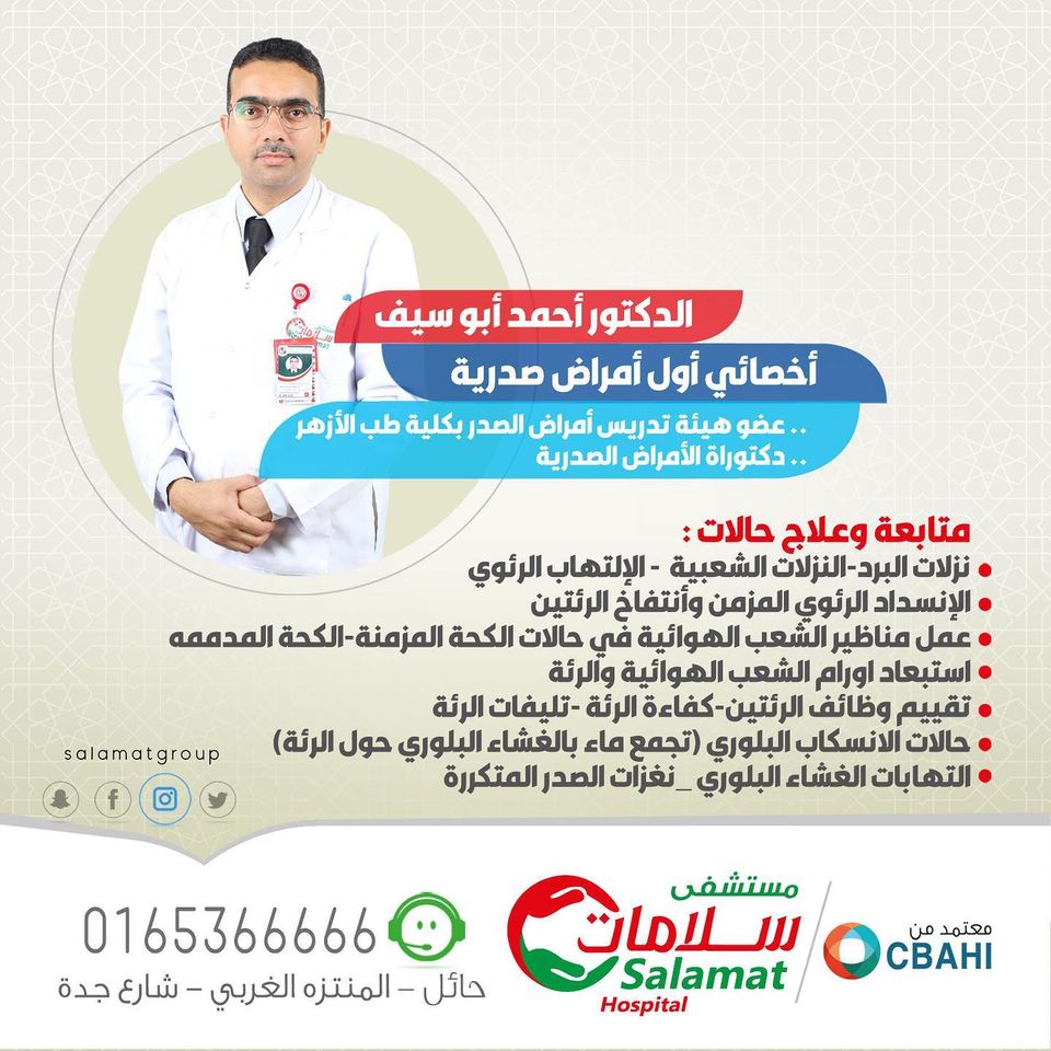 د/ أحمد ابوسيف (مستشفي سلامات) أخصائي أول أمراض صدرية وعضو هيئة تدريس أمراض الصدر بكلية طب الأزهر ودكتوراة الأمراض الصدرية admin
